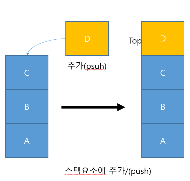 - Stack(Last In First Out(FIFO): 맨 마지막에 추가 된 요소가 가장 먼저 꺼내지는 자료구조