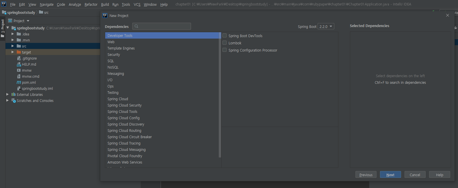 6. [사용할 환경 설정 선택] ->Dependencies 설정