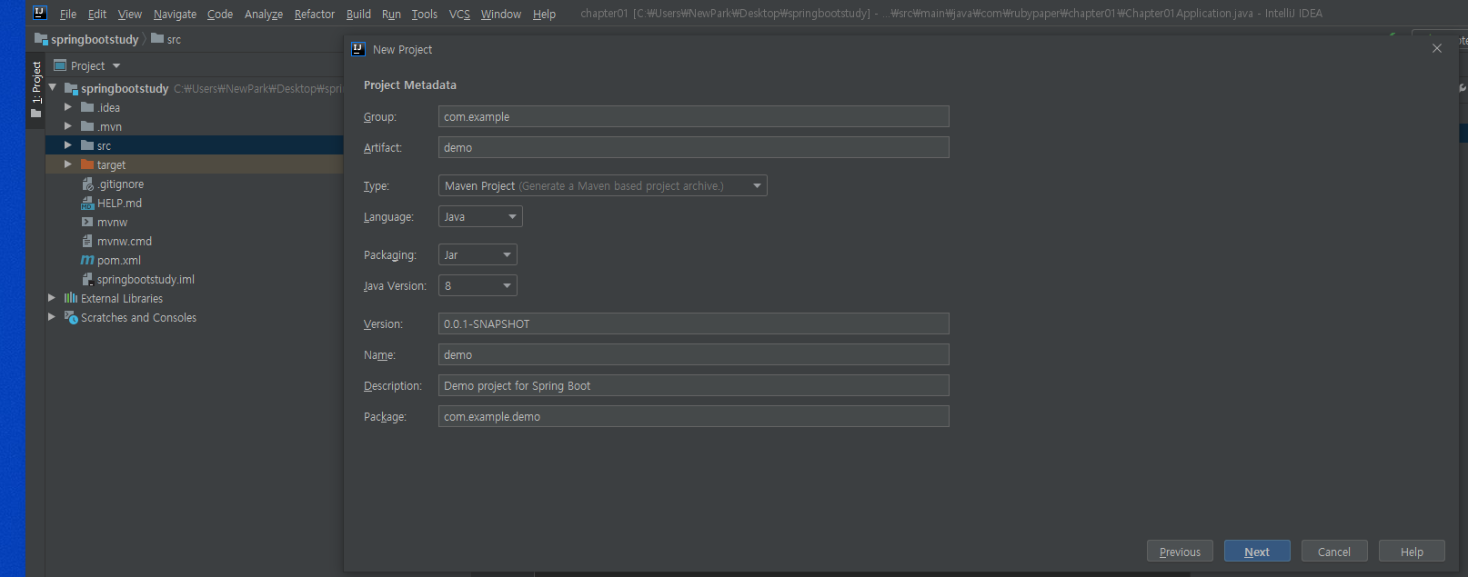 5. [Project metaData] 그룹명 패키지명 입력 ->[Next]